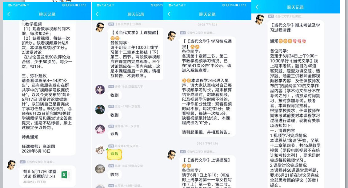 张治国老师疫情期间承担了汉语言1811班、1812班和辅修双学位学生《当代文学》的教学任务。面对全新的在线教学形式,张治国老师积极迎接挑战,通过主动学习,迅速掌握了异步SPOC和独立SPOC课程的建设流程和技术操作要领,并利用中国大学慕课平台教学资源建成异步SPOC课程,采用线上线下混合,以线上为主的方式组织教学,利用系统中的“慕课堂”平台,实现了对不同班级学生的精准化、精细化管理。