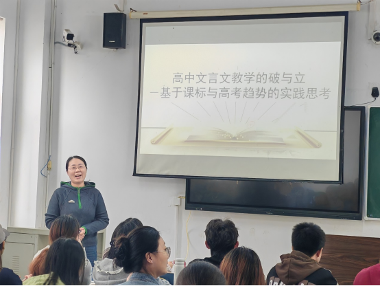 会上,魏老师聚焦中学语文教育的变革趋势,从“群文解读”“跨学科融合”等前沿视角展开剖析。她提出,文言文教学内容已从单一文本拓展至多元素材,例如将影视资源引入课堂,开展儒家经典《侍坐》与道家经典《庖丁解牛》的联读教学,打破了传统文言文教学的边界;在能力素养培养上,实现了从读写基础训练到核心素养培育的进阶,让教学目标更具育人深度;学习方式也从学生被动接受到主动实践探索转变,鼓励学生在探究中感悟文言魅力;价值导向上,更是完成了从知识传递到全面育人的升华,让文言文成为涵养学生品格的文化载体。